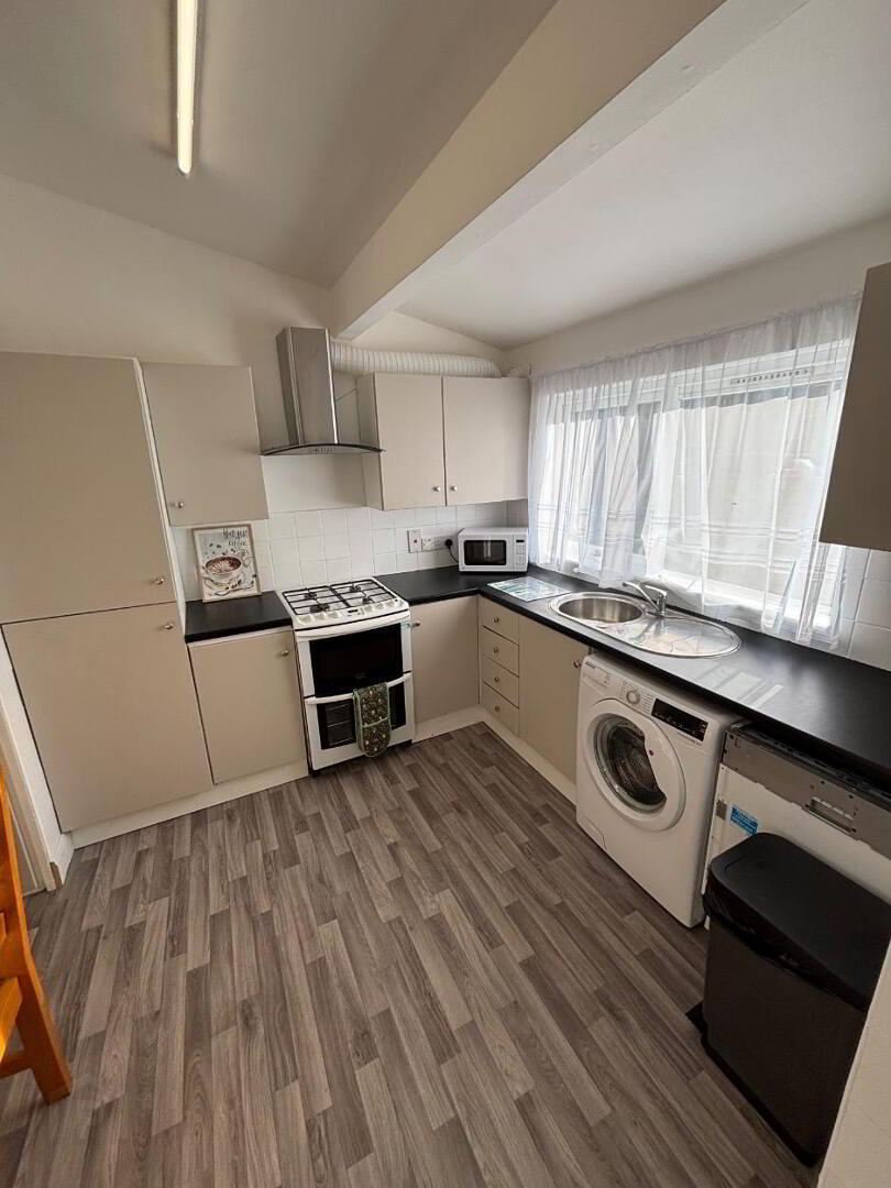 Spacious and functional kitchen with a range of high and low-level units, laminate flooring, and ample room for dining. Large frontal facing window offer plenty of light throughout the day.